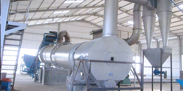 有機肥烘干機可將高達70%-80%含水量的禽畜糞便一次直接烘干至13%的安全貯藏水分,整個過程在封閉系統內進行,從而減少干燥過程中對環境的污染。設備主要由熱源、上料機、進料機、回轉滾筒、出料機、物料破碎裝置、引風機、卸料器和配電柜構成;脫水后的濕物料加入干燥機后,在滾筒內均布的抄板器翻動下,物料在干燥機內均勻分散與熱空氣充分接觸,加快了干燥傳熱﹑傳質。在干燥過程中,物料在帶有傾斜度的抄板和熱氣質的作用下,至干燥機另一段星形卸料閥排出成品。